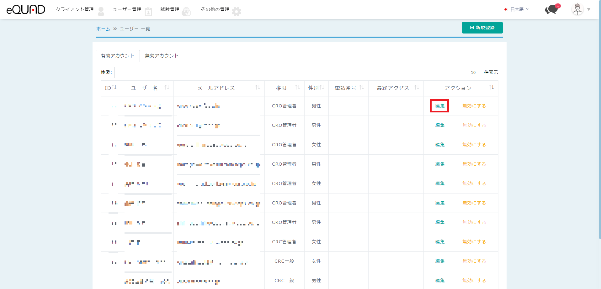 ① 「ユーザー管理」「ユーザー一覧」を押下してください。