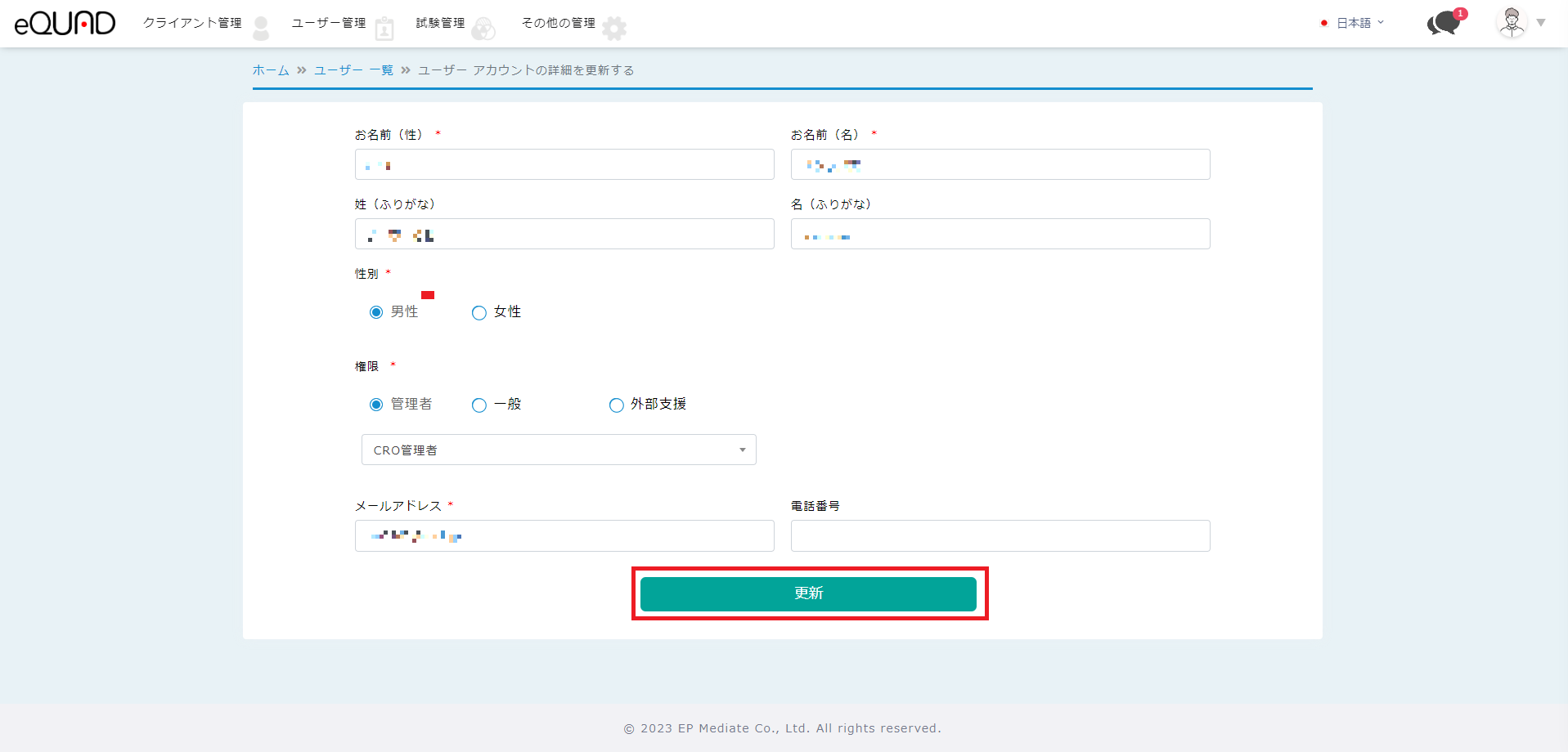 ③ 編集したい項目を入力の上、「更新」を押下してください。
