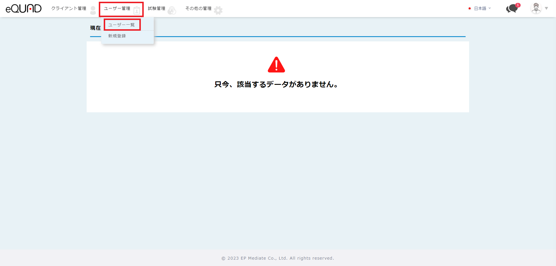 ① 「ユーザー管理」「ユーザー一覧」を押下してください。