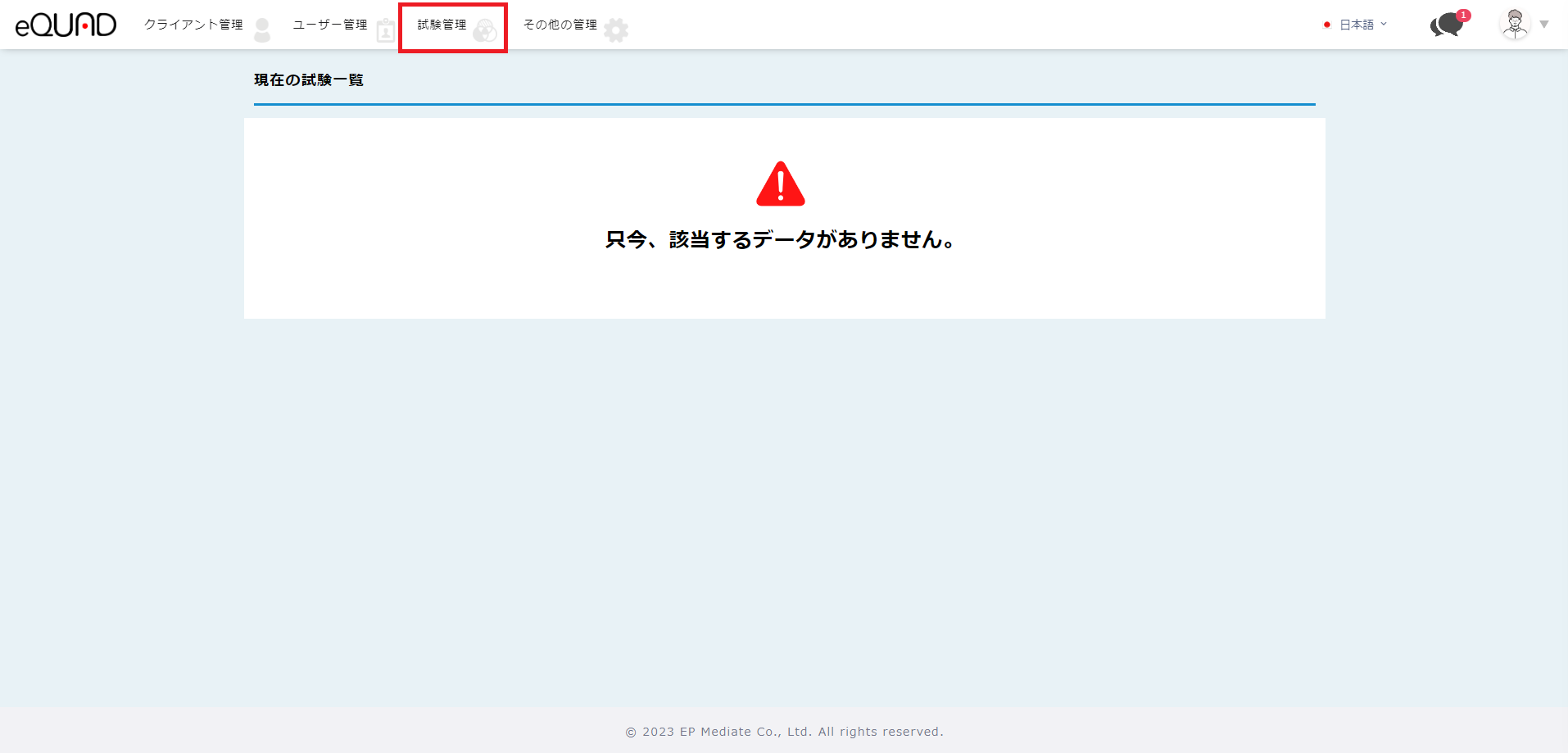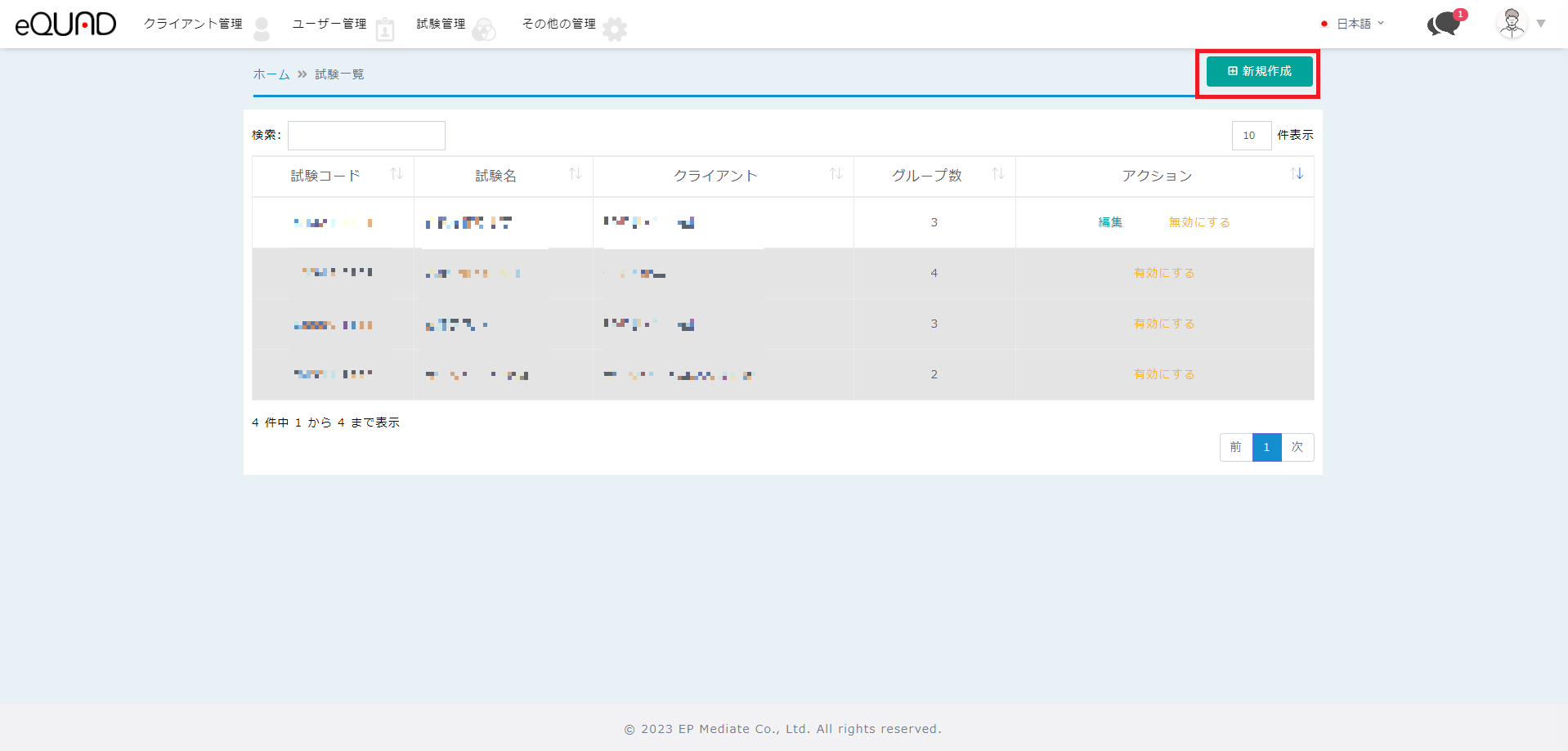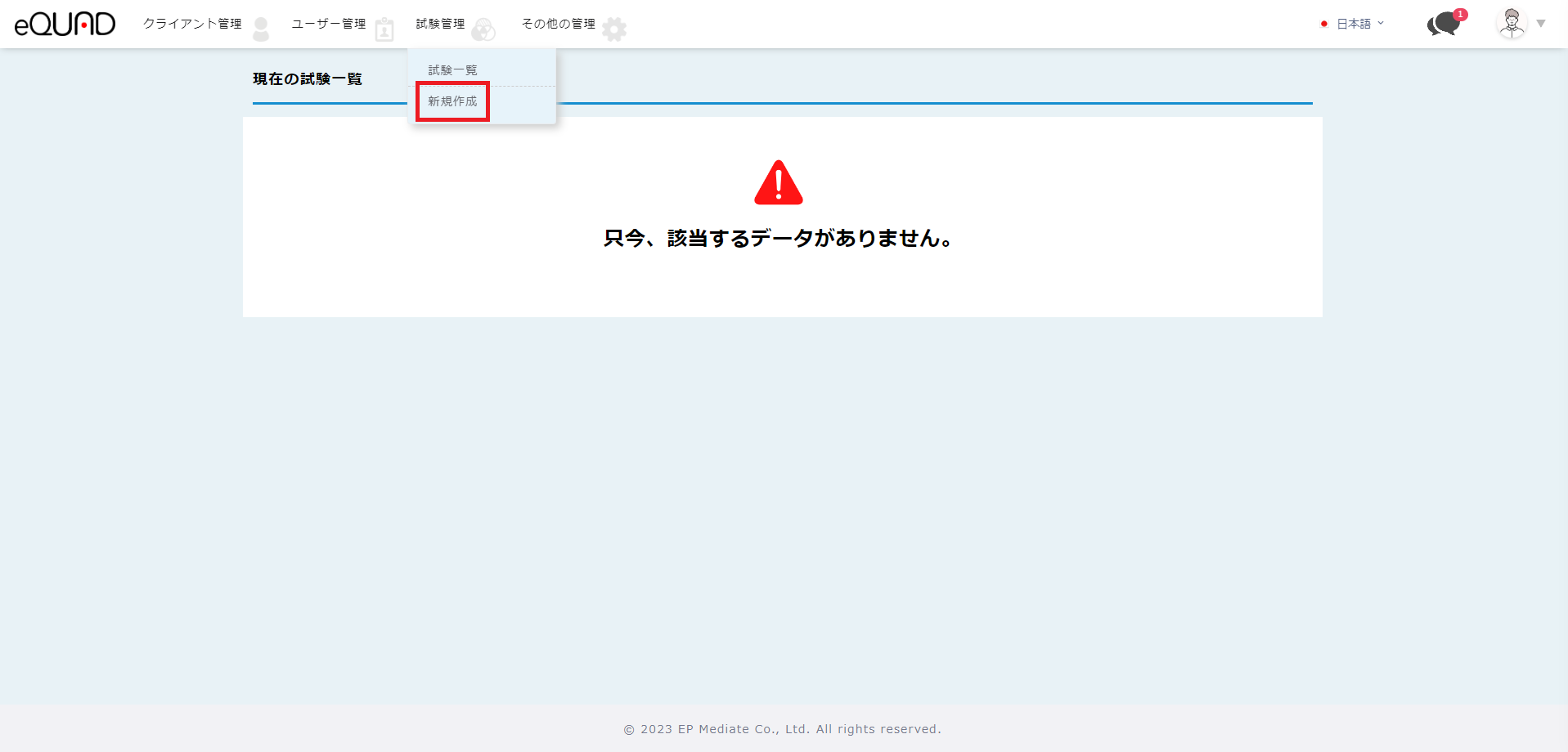 ② 「新規作成」もしくは試験一覧画面右上の「新規作成」を押下してください。