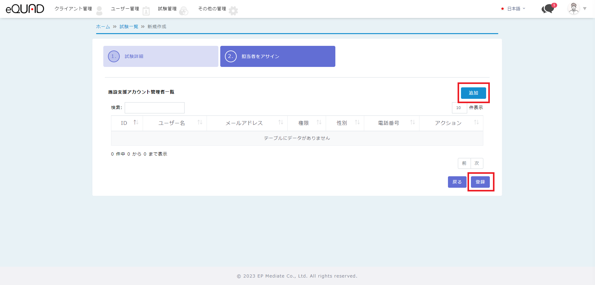 ④ 追加ボタンから担当者をアサインの上、「登録」を押下してください。