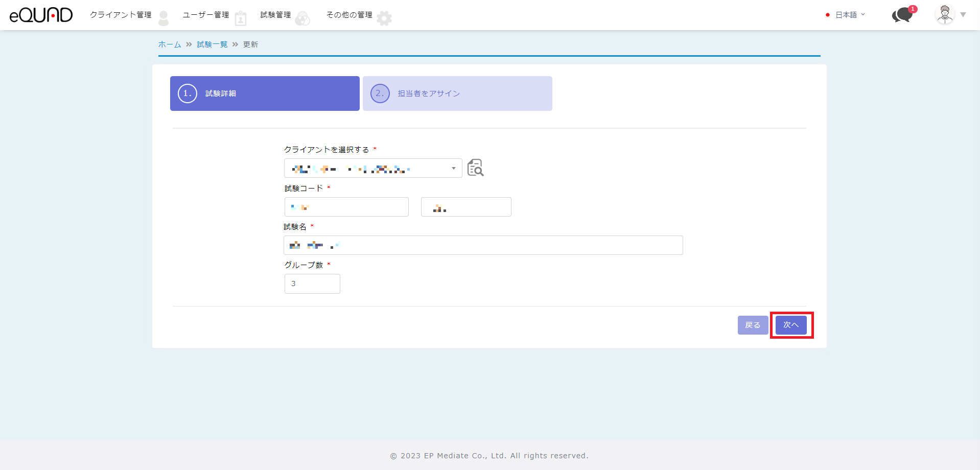 ③ 編集したい項目を入力の上、「次へ」を押下してください。