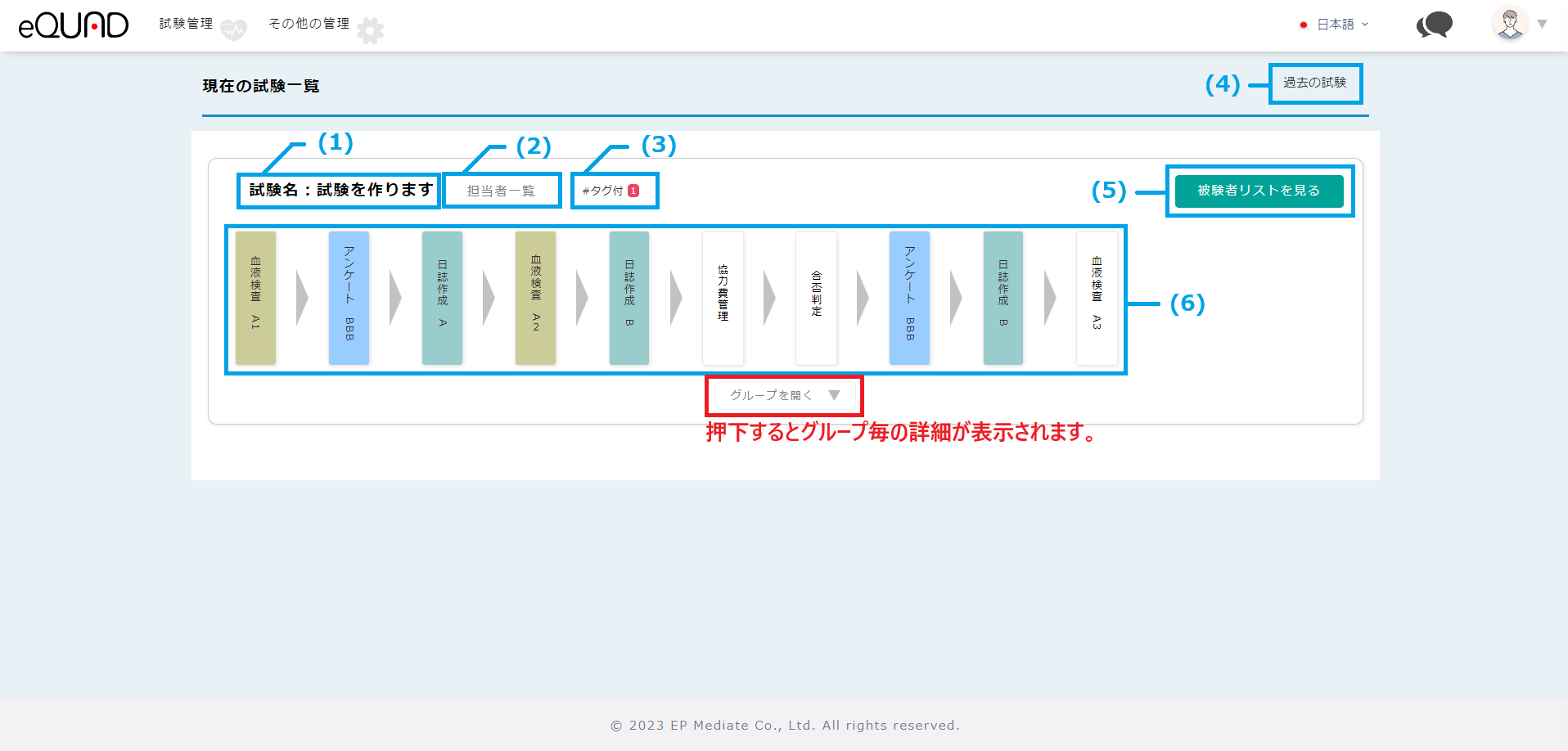 (5) クリックすると被験者一覧が表示されます。