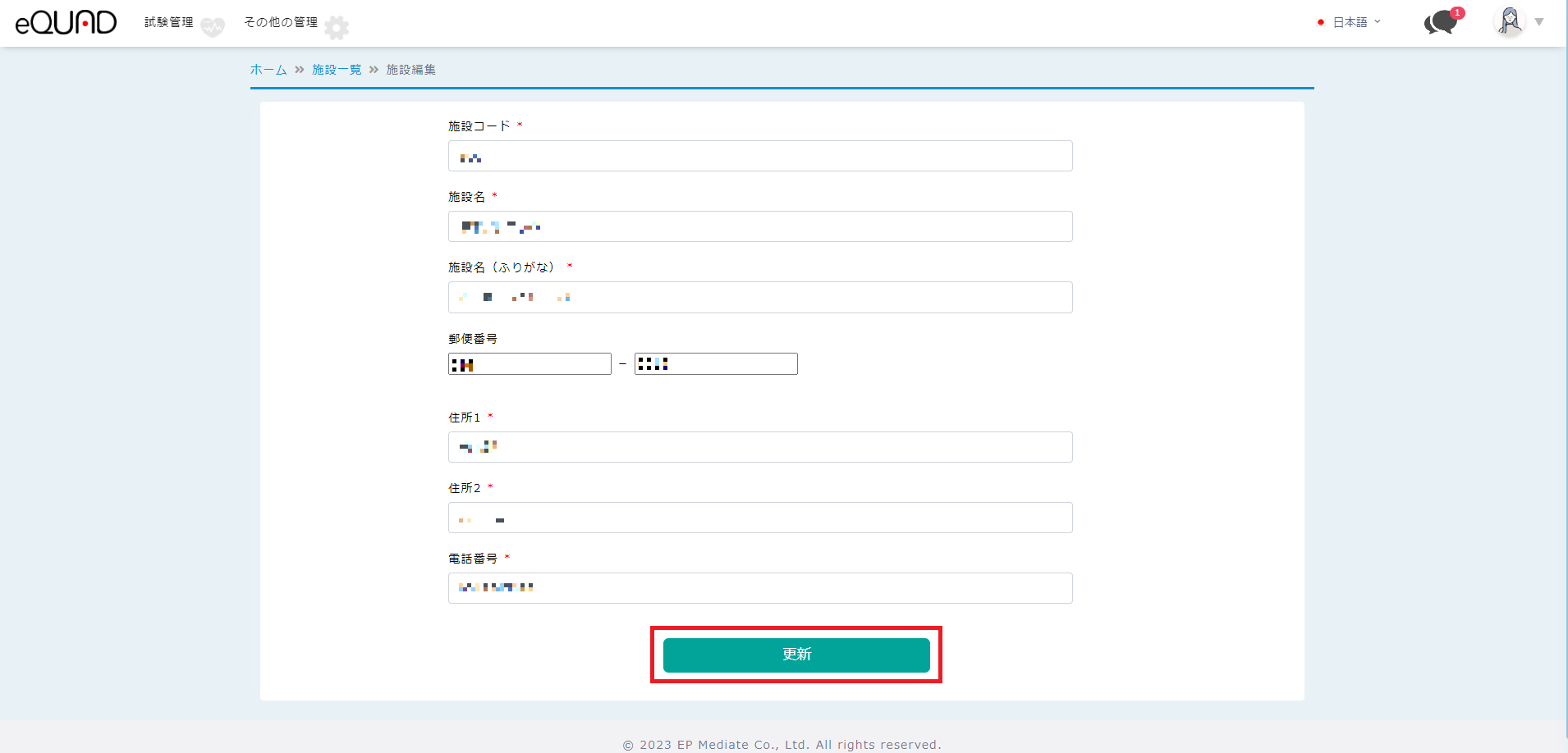 ③ 編集したい項目を入力の上、「更新」を押下してください。
