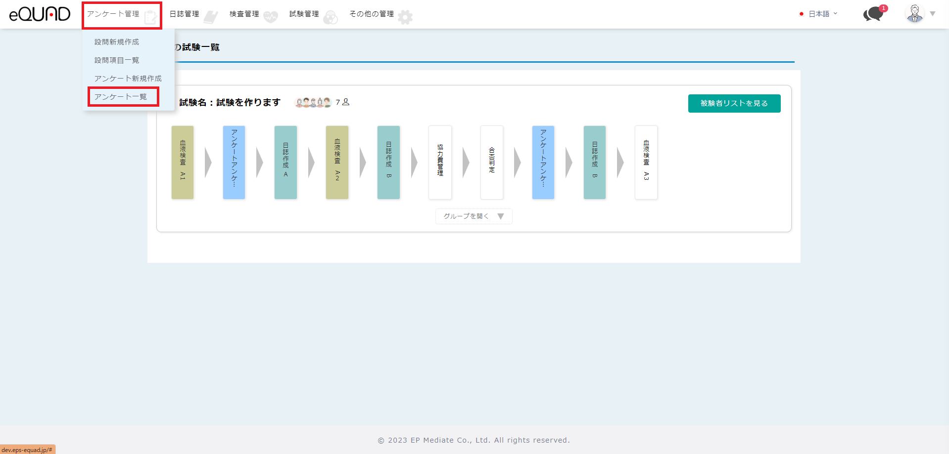 ① 「アンケート管理」「アンケート一覧」を押下してください。