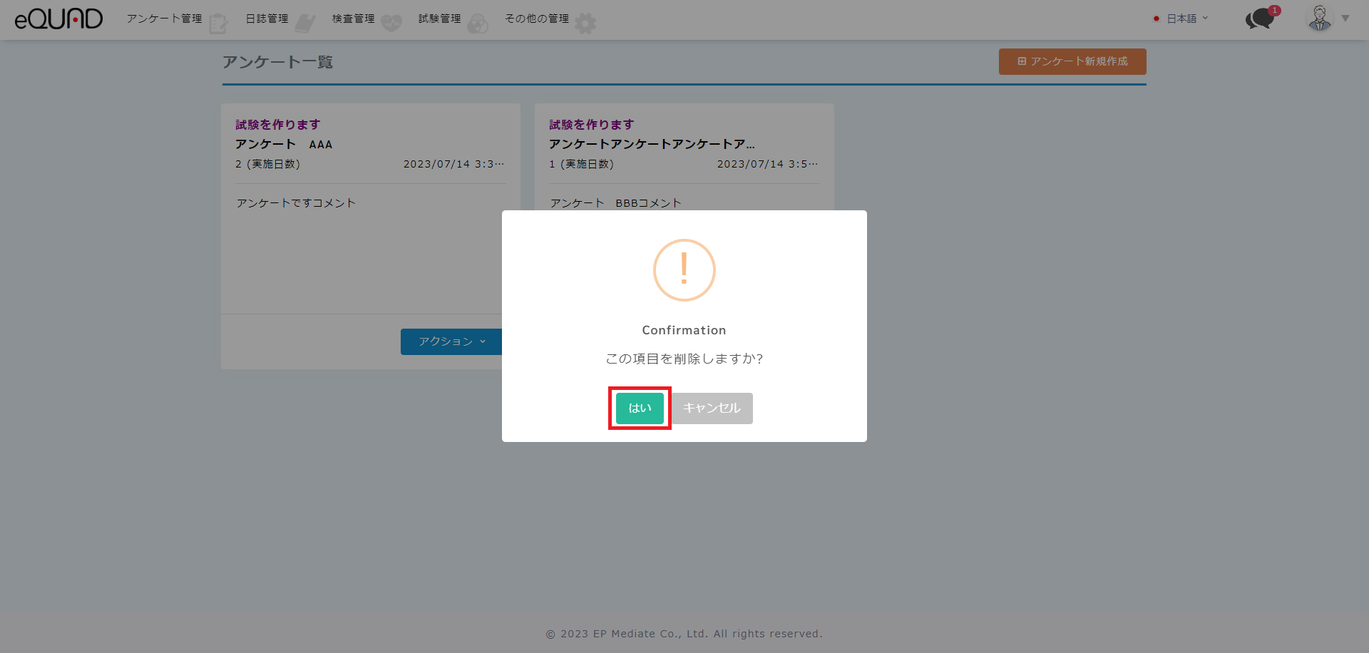 ② 内容をご確認の上、問題なければ「はい」を選択します。