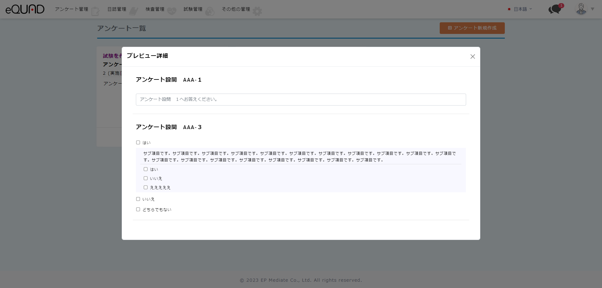 アンケートプレビューの確認