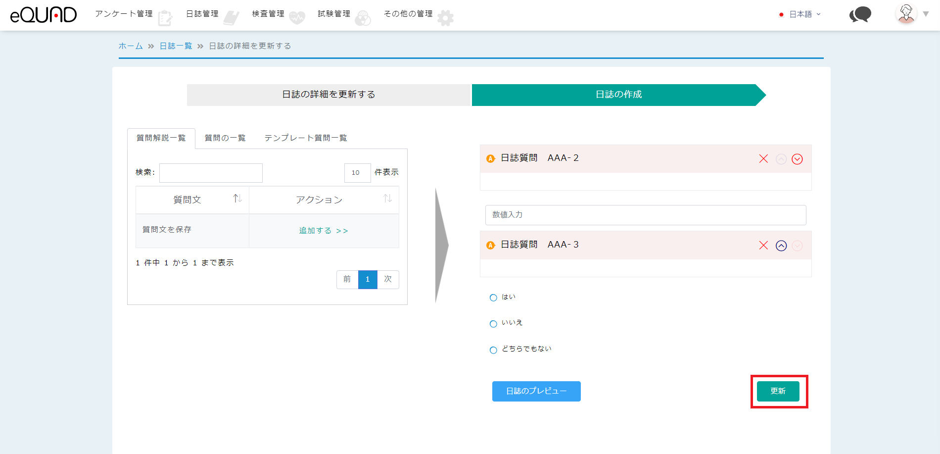④ 編集したい項目を入力の上、「更新」を押下してください。