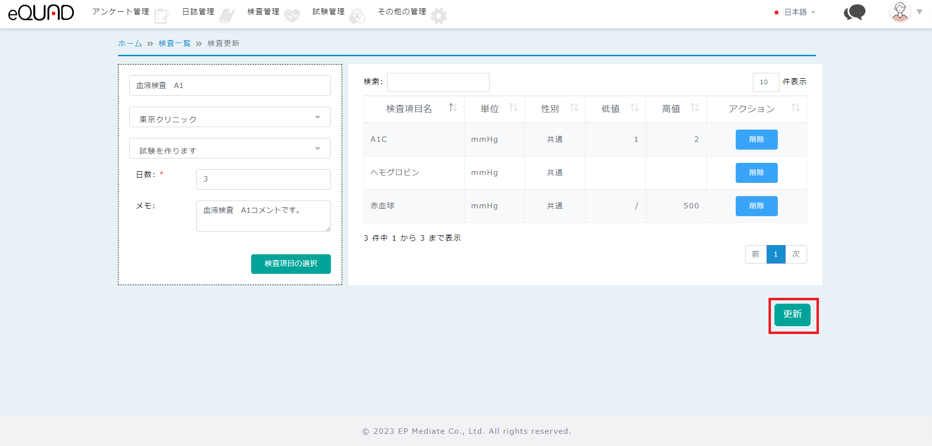③ 編集したい項目を入力の上、「更新」を押下してください。