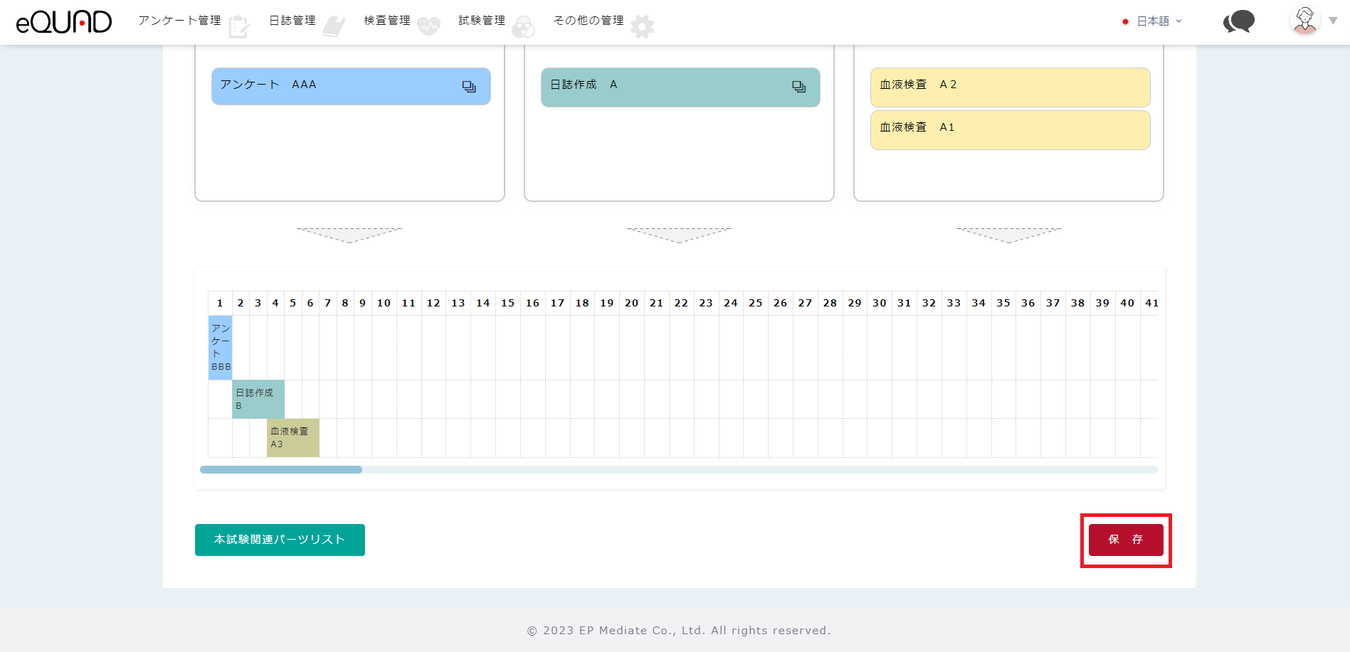 ④ 試験パーツを編集の上、「保存」を押下してください。
