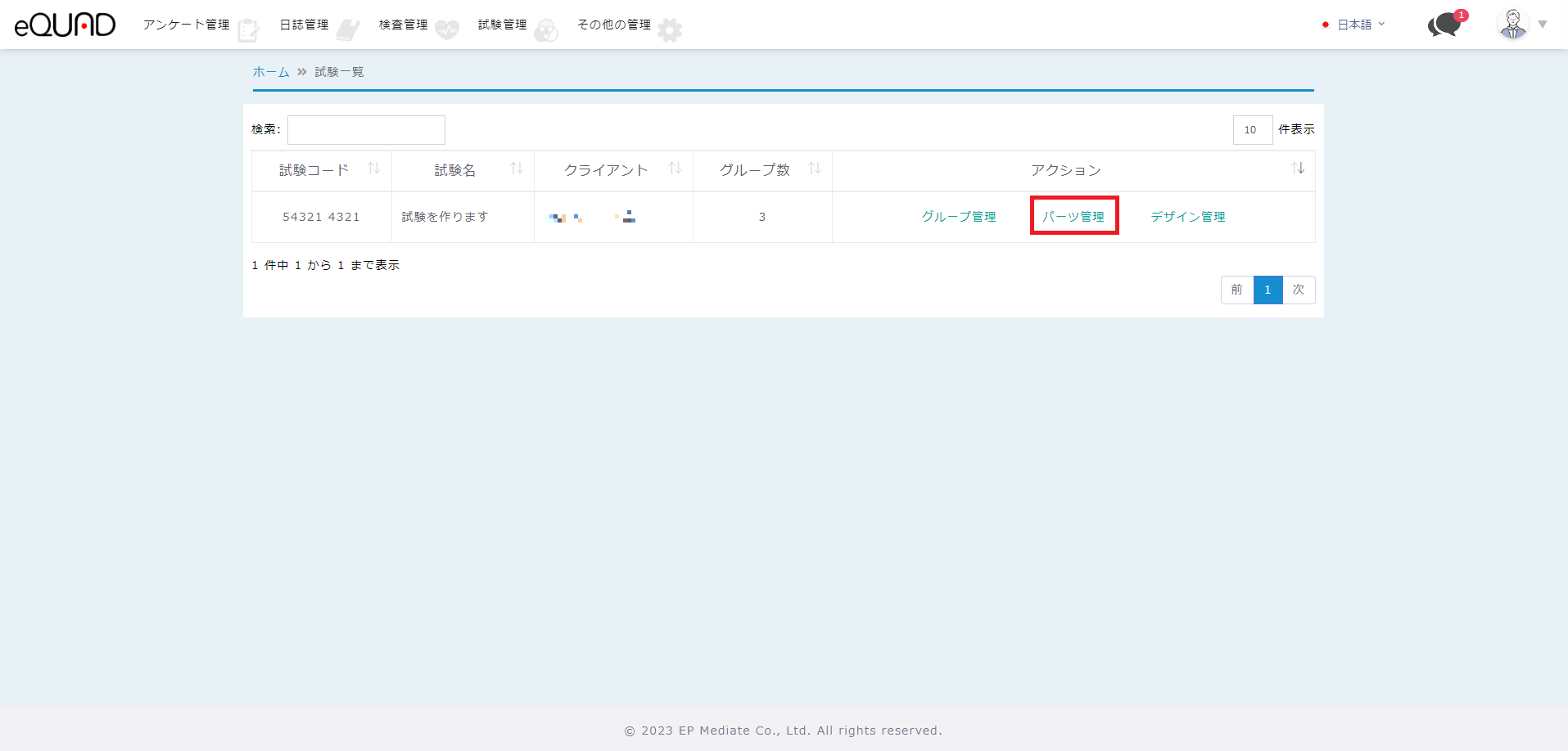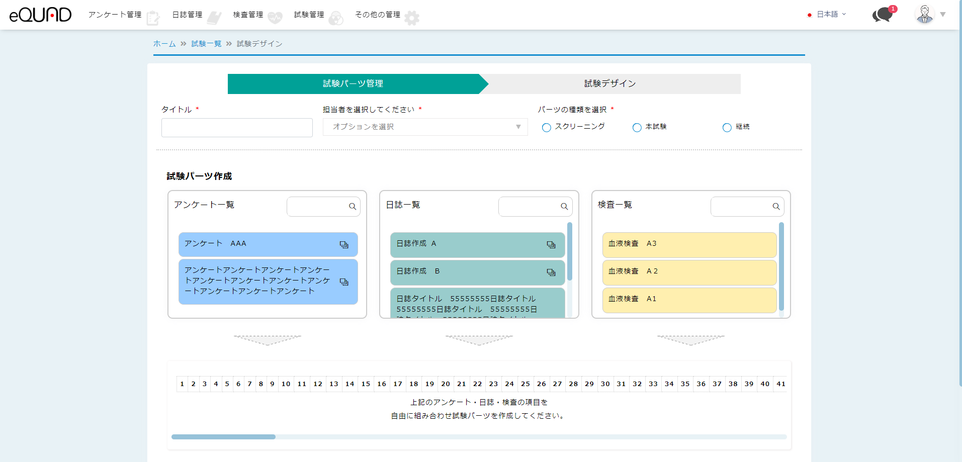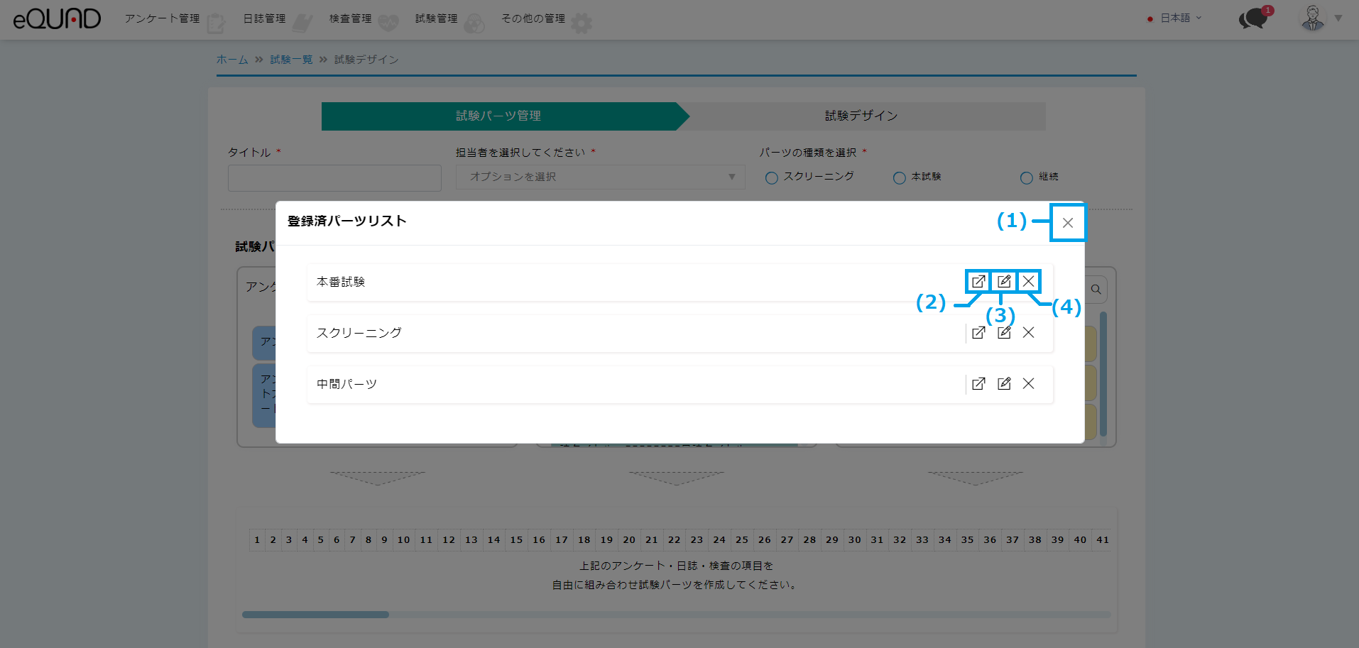 ※誤って閉じてしまった場合でも、画面左下の「本試験関連パーツリスト」より登録済パーツを編集できます。