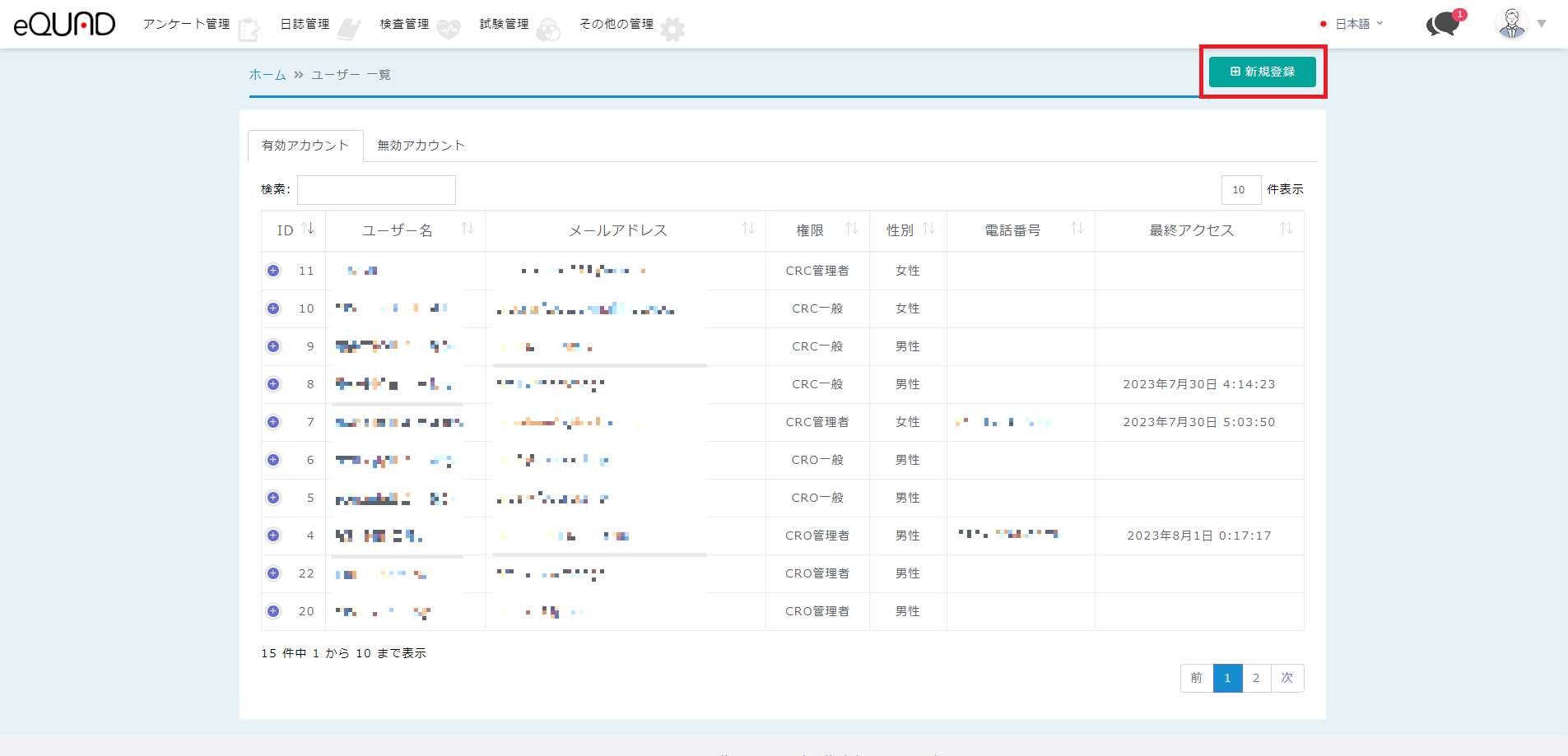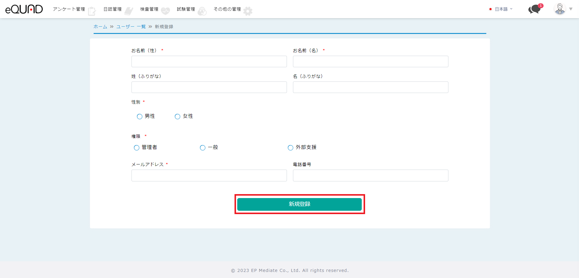 ③ ユーザー情報を入力の上、「新規登録」を押下してください。