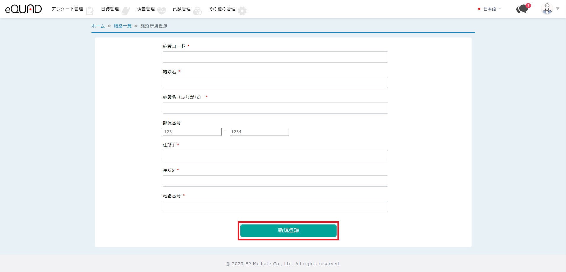 ③ 施設情報を入力の上、「新規登録」を押下してください。