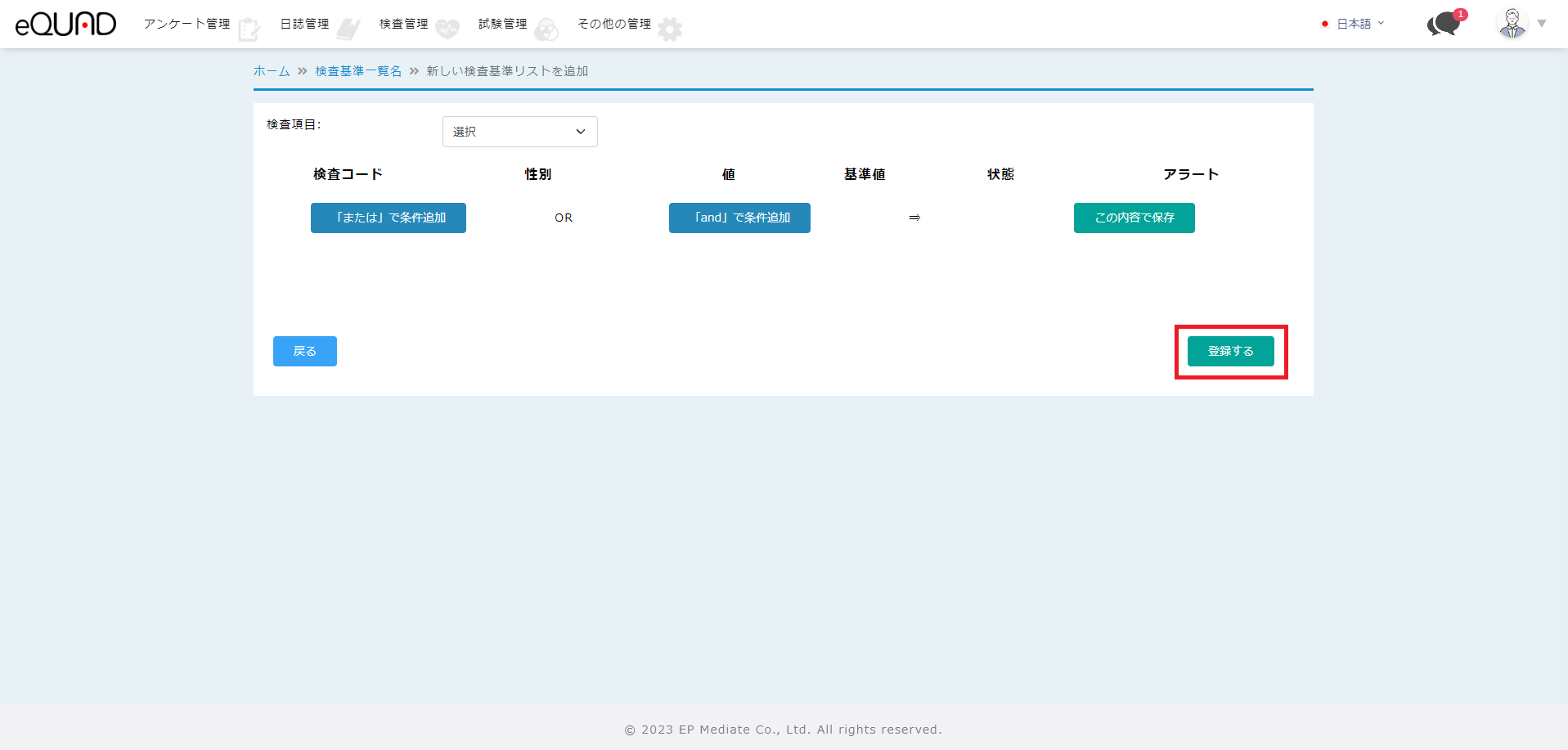 ④ 異常値及びアラート条件を入力の上、「登録する」を押下してください。